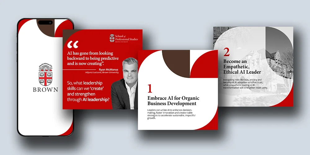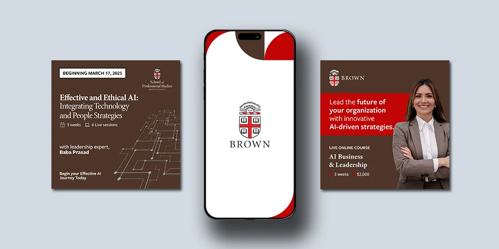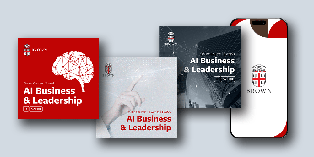 Como responsable del diseño gráfico de la Universidad de Brown, llevé a cabo un restyling de su identidad visual para las creatividades en redes sociales, Meta y Ads. En las imágenes se aprecia cómo, respetando su paleta de colores y tipografías, incorporé un estilo gráfico definido por ilustraciones minimalistas y conceptuales, junto con montajes fotográficos abstractos, logrando un refrescamiento visual más atractivo, fresco y moderno.
