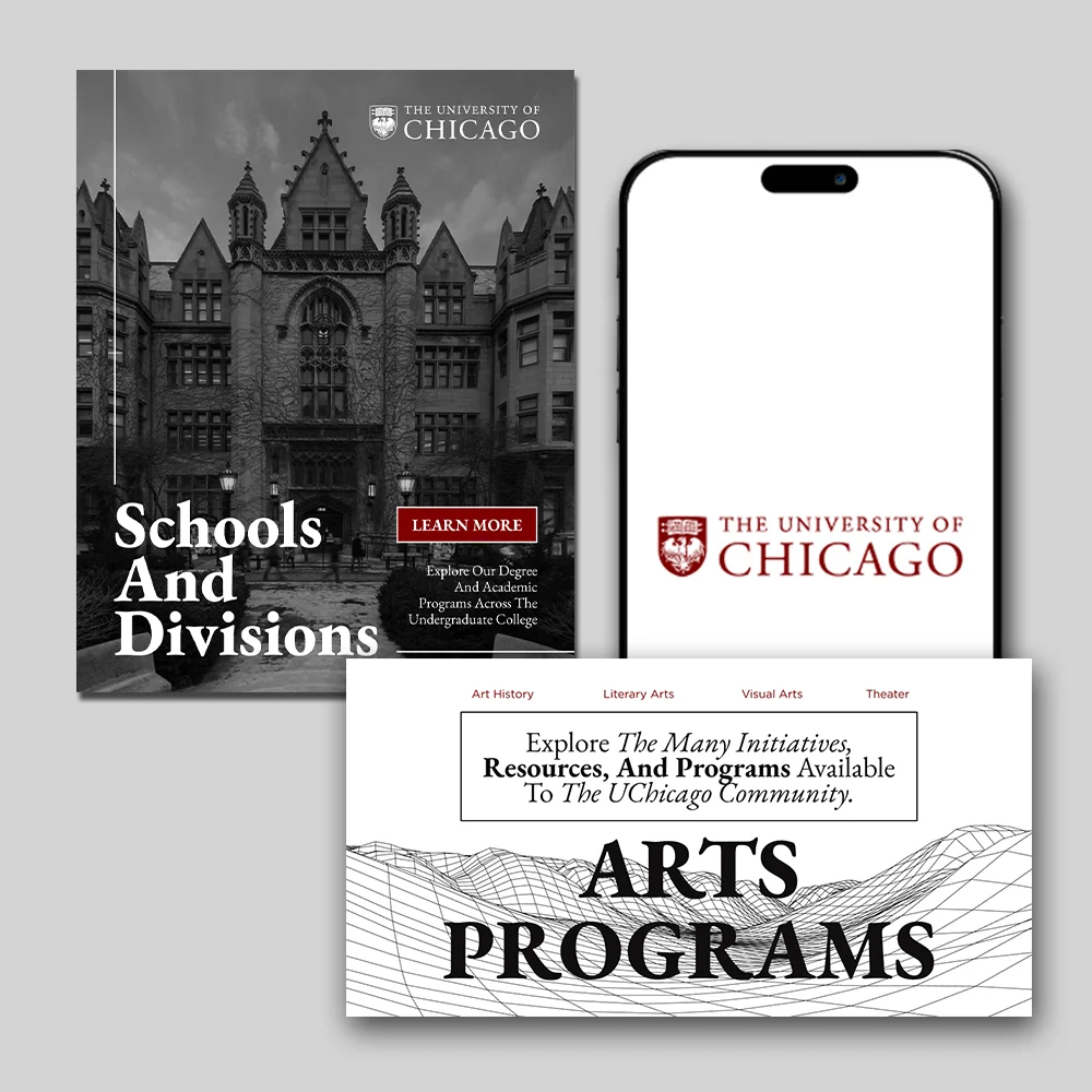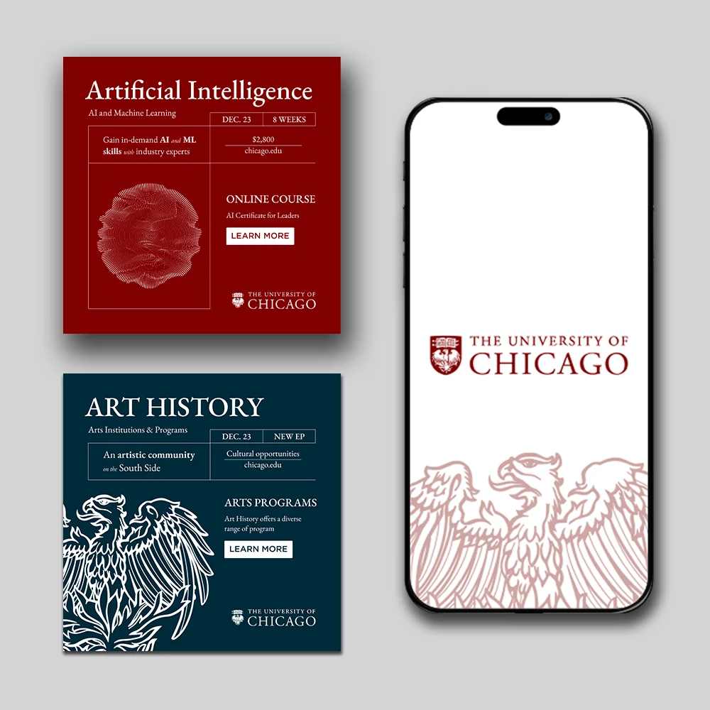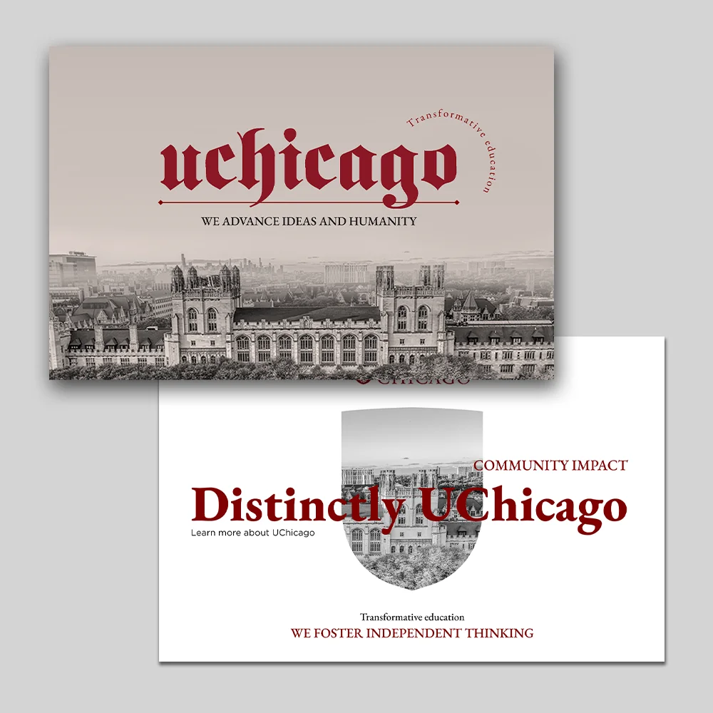 Como responsable del diseño gráfico de la Universidad de Chicago, lideré el restyling de su identidad visual para diversas piezas creativas, incluyendo banners web, redes sociales, Meta y Ads. Respetando la paleta de colores institucional y las tipografías oficiales, desarrollé un estilo visual inspirado en la estética gótica académica, transmitiendo elegancia y distinción.