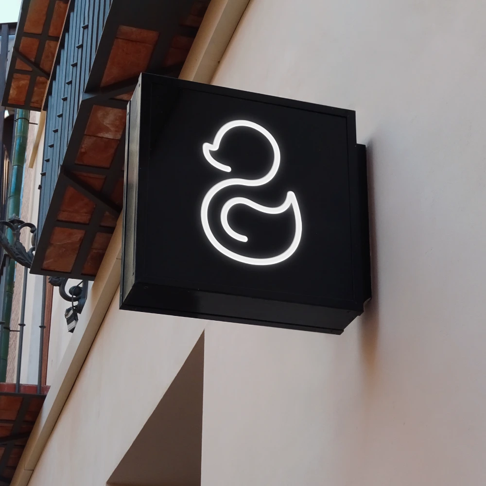 Para esta agencia de publicidad, me pidieron un logo moderno y minimalista que evocara la imagen de un patito de goma. Así nació este diseño de un solo trazo, que da forma a un pato estilizado y transmite jovialidad y entusiasmo sin perder profesionalidad y elegancia.